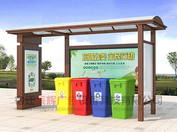 更多垃圾分類亭一般放在小區或者公共的地方集合垃圾之用。同樣的材料也可制成配電房、報亭、崗亭、景區休息室等。宿遷辰輝廣告設備科技有限公司,我們的產品豐富多元化,應用場景廣泛,也可以根據客戶的需要來圖定做。